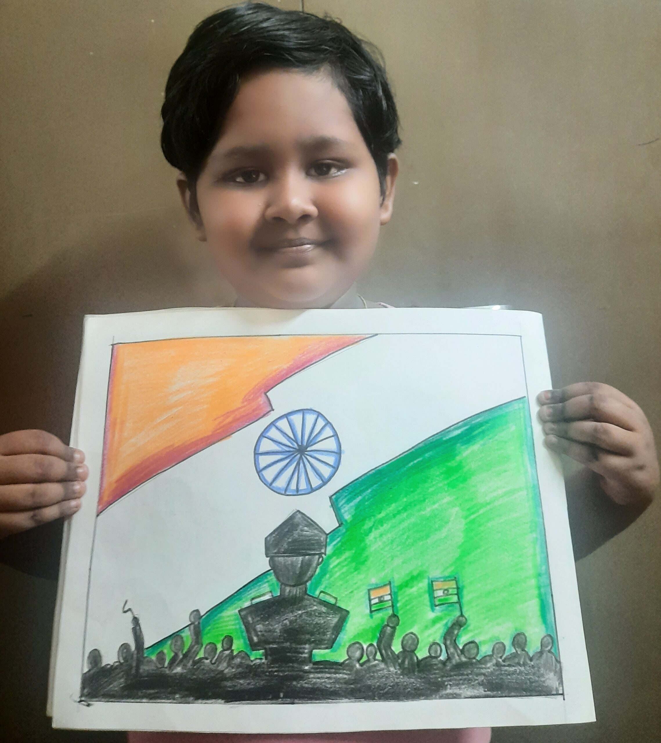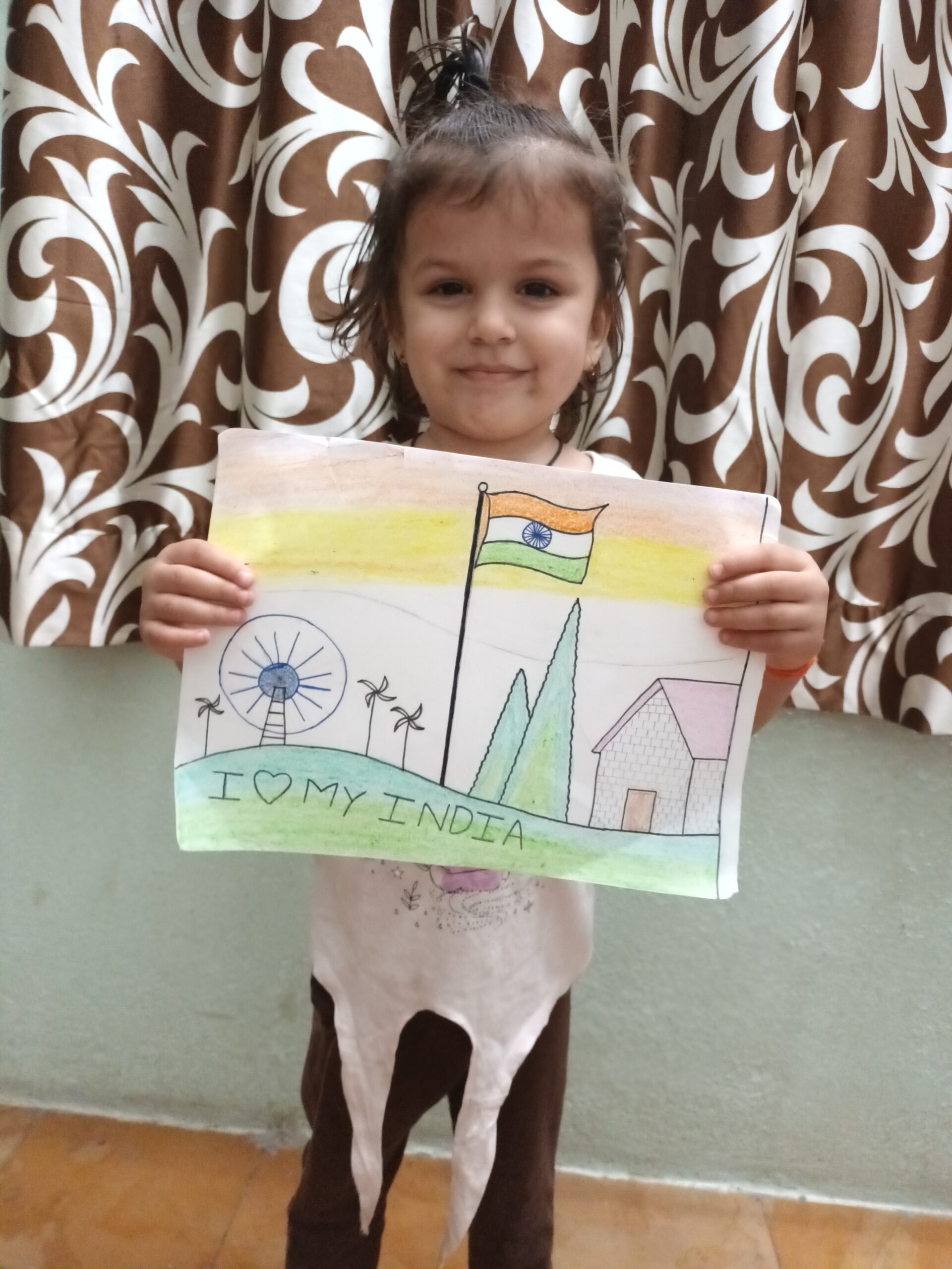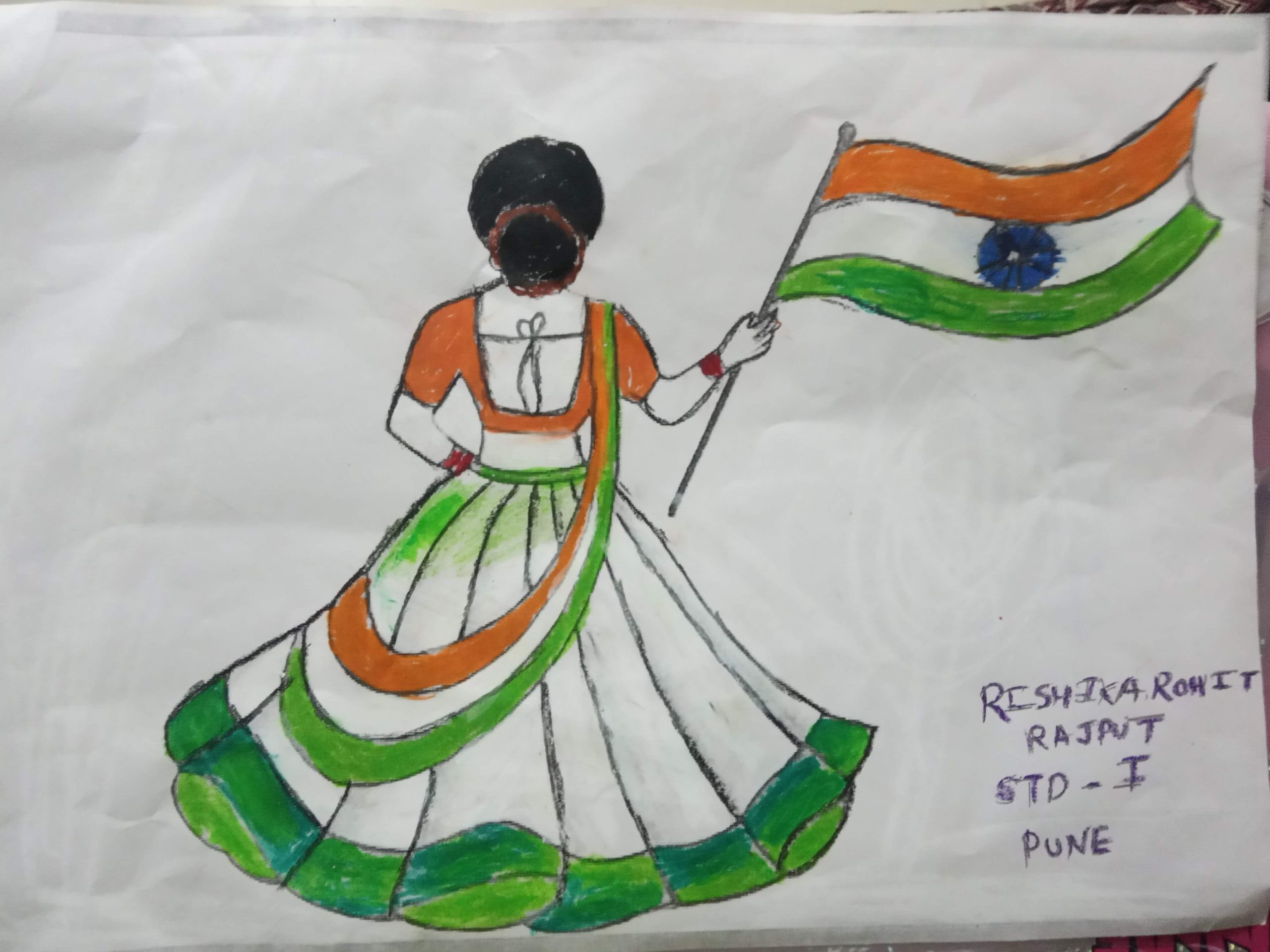 Judge's comment: It's creative, how the girl is wearing a dress coloured as National Flag and holding a National Flag. It depicts the Women Empowerment. In the History of Indian Independence, women have played an important role and two women are very recognized, namely Rani Laxmi Bai and Matangini Hazra.