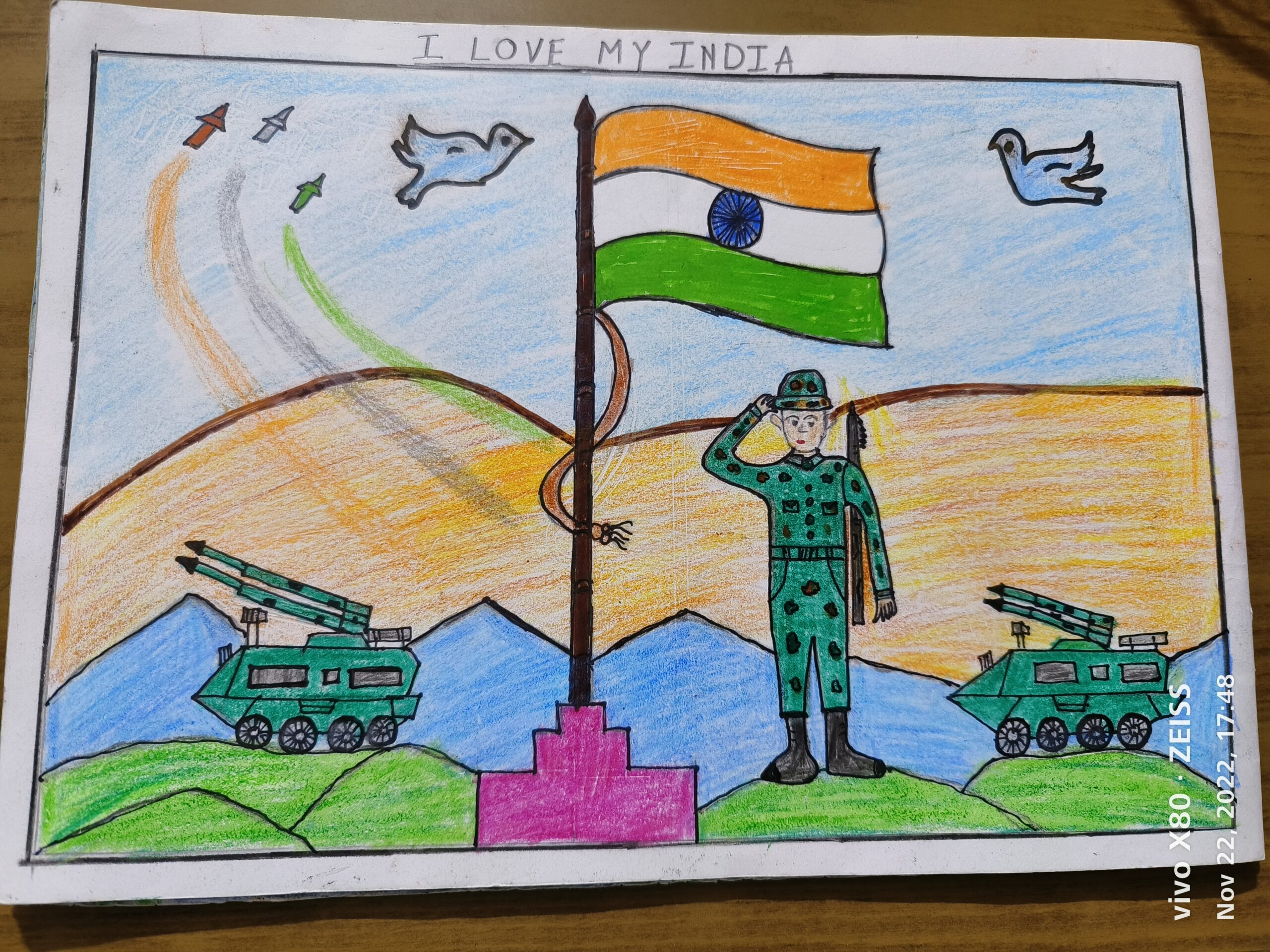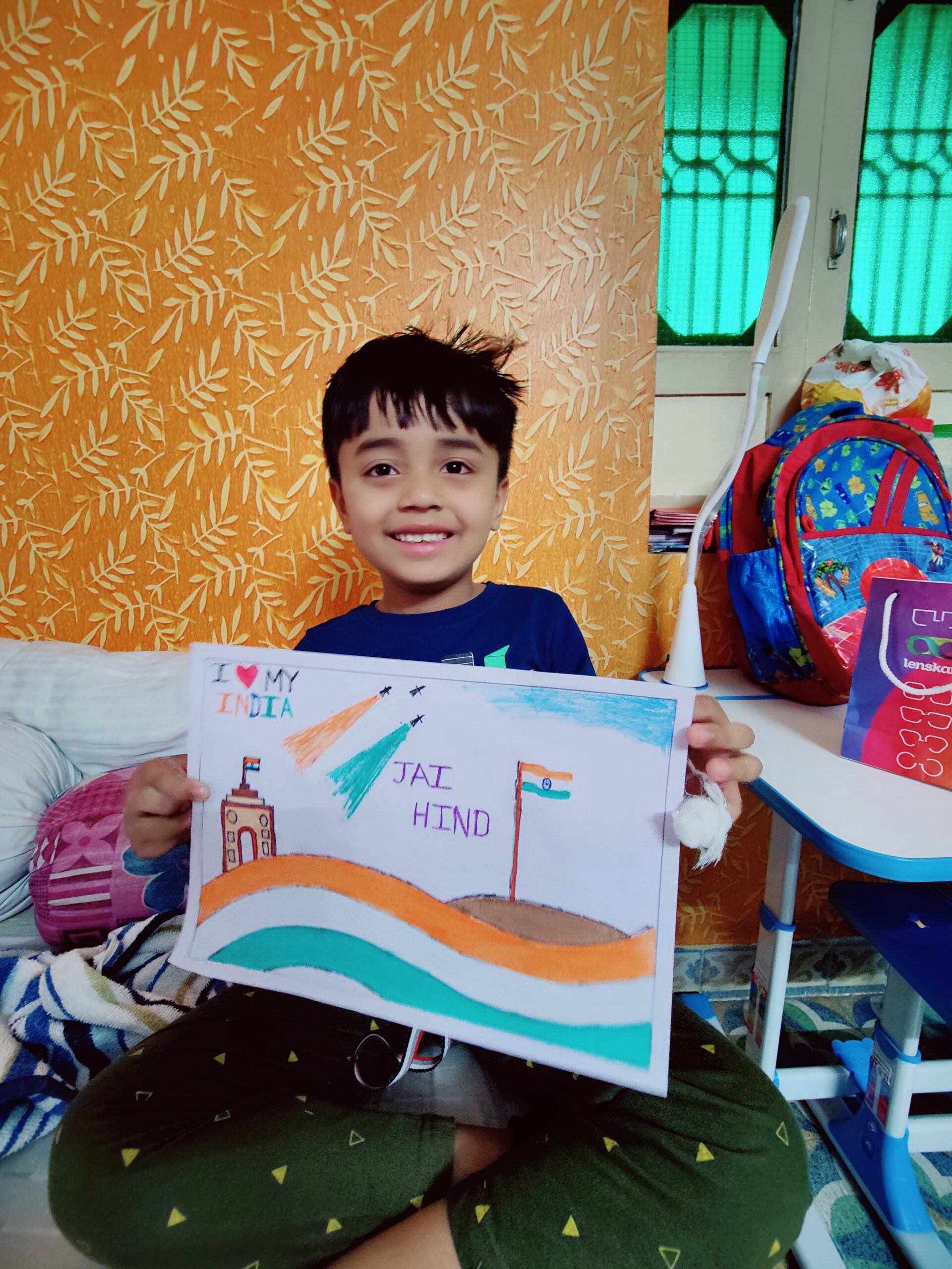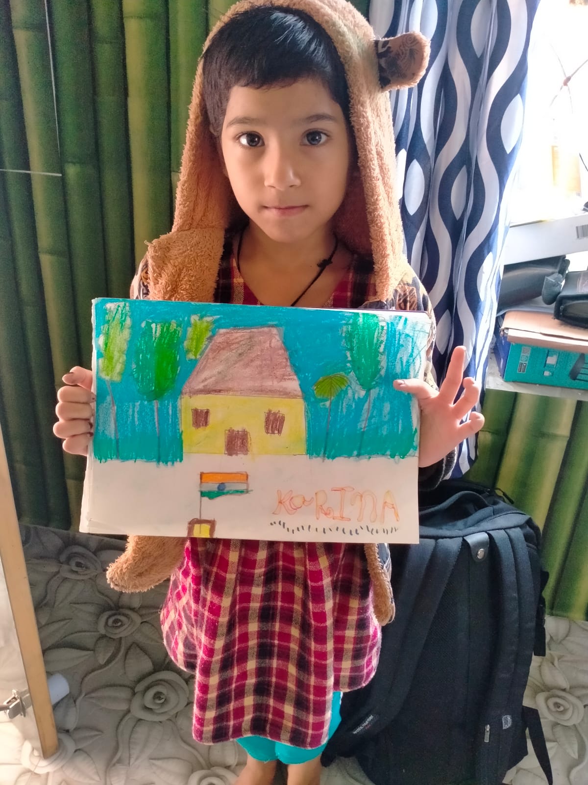 Judges comment: Many others have drawn the same National Flag and a house but this drawing depicts the Renewable Energy and we look forward to a modern India with modern thinking.