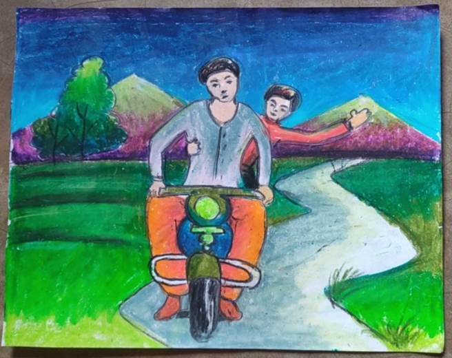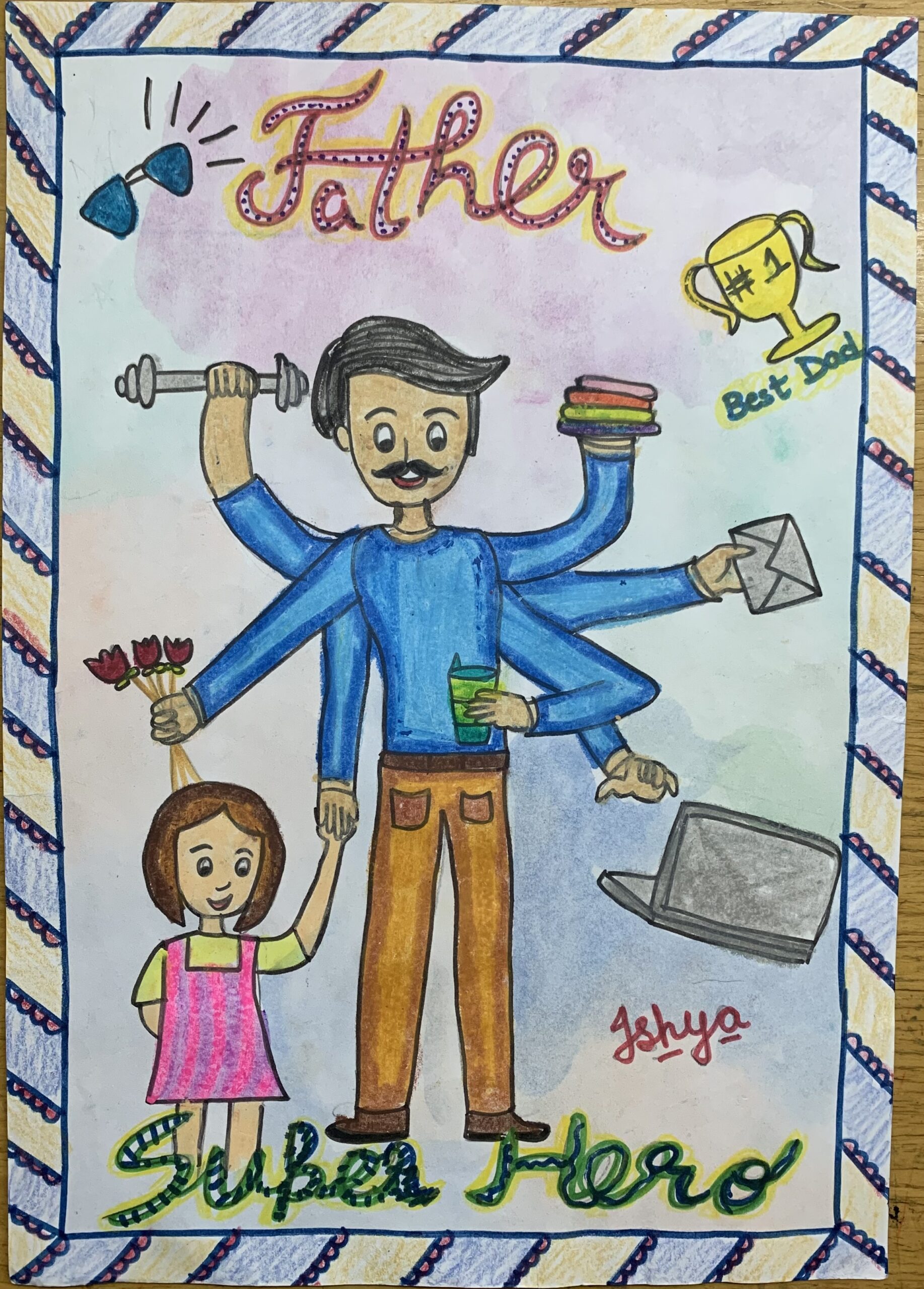 Judge's comment: This is another brilliant drawing which depicts that the father is a Hero for him/her because he taken them to school as well as to other places.