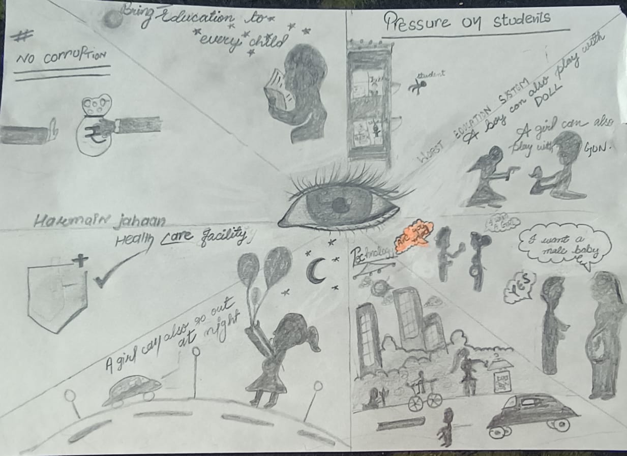 Judge's comment: Though this child has made just a sketch, he has included the core social issues that need to be addressed immediately and the government of India is also working hard to bring such change and remove stereotypes from the society.